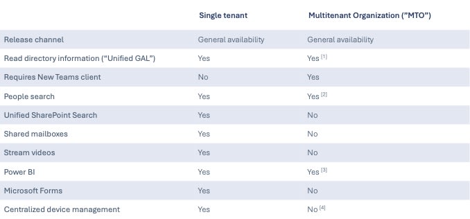 [^1] Multitenant organizations are in Preview and therefore not a fully