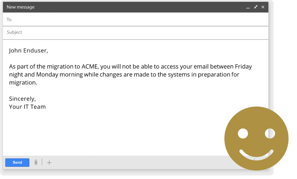This guide to effective end-user email communication is designed to help you keep your end-users informed in a way that will reduce their stress and drive engagement and interest in the success of your project.